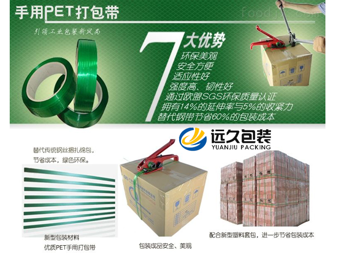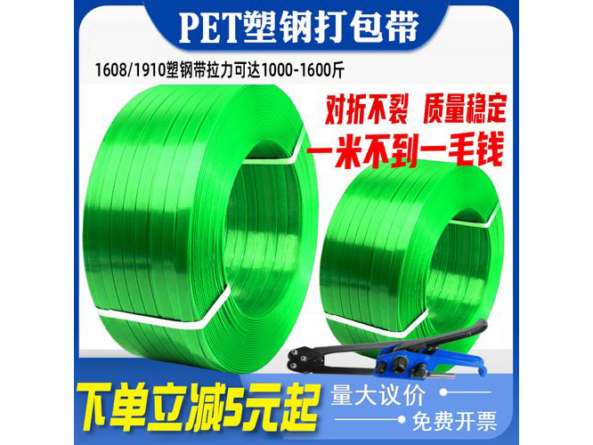 捆扎是指直接將單個(gè)或數(shù)個(gè)包裝物用繩、鋼帶和塑料帶等捆緊扎牢以便于運(yùn)輸、保管和裝卸的一種包裝作業(yè),捆扎緊固包裝是包裝的最后一道工序。捆扎緊固方式常用塑料帶對(duì)木箱包裝件和托盤進(jìn)行水平捆扎和垂直捆扎,以防止木箱包裝件在運(yùn)輸過程中搖晃。適用于日光、熱、冷等各種惡劣條件的流通環(huán)境。 PET塑鋼打包帶又稱聚酯捆扎帶,英文名為“PET strap”,是一種以PET(礦泉水瓶的原材料)為主要原材料經(jīng)特殊工藝加工而成的高強(qiáng)度、高拉力的新型塑料打包帶。PET打包帶具有與鋼帶同樣的強(qiáng)度和拉力,保持了塑料制品的延仲性和收縮性能,確保貨物在受到外力沖擊下避免斷帶散包的情況出現(xiàn)。 除此之外,與鋼帶相比,打包帶還具有安全環(huán)保、永不生銹、省錢50%、操作方便等優(yōu)勢。因此,自2002年以來,PET打包帶逐步替代傳統(tǒng)的鋼帶、鋼絲、PP帶等打包帶,成為目前國際上最流行新型環(huán)保包裝材料,深受國內(nèi)外廣大生產(chǎn)制造業(yè)企業(yè)的贊同。 目前,PET打包帶已經(jīng)廣泛應(yīng)用在木業(yè)、紙業(yè)、鋼鐵、化纖、棉花、鋁錠、鋅錠、鎂錠、玻璃、建材、金屬、煙草、電子電器、陶瓷、汽車零配件等行業(yè)。鑒于PET打包帶具有安全環(huán)保的優(yōu)勢,于2008年中國正式將PET打包帶寫入國家棉花捆扎標(biāo)準(zhǔn),全面替代傳統(tǒng)鋼帶捆扎棉花包,PET打包帶產(chǎn)品再次得到國家認(rèn)可。 PET塑鋼打包帶與傳統(tǒng)鋼帶、PP帶相比,PET打包帶的優(yōu)勢主要有: 經(jīng)濟(jì)效益佳:PET塑鋼帶的性價(jià)比介于PP帶和鋼帶之間,性能更趨向于打包鋼帶,通過PET打包帶與鋼帶的性能對(duì)比分析及實(shí)踐數(shù)據(jù)可知,使用PET打包帶可以完全替代同等規(guī)格的鋼帶或相同拉力強(qiáng)度的鋼絲打包貨物。經(jīng)計(jì)算所得,相同規(guī)格等長下,PET打包帶的重量只有鋼帶的1/6,使用PET打包帶替代鋼帶可以節(jié)省50%的包裝成本。 環(huán)保美觀:PET打包帶捆扎好貨物后外觀美觀,具有防生銹、防水、抗腐蝕特性,不會(huì)對(duì)包裝物造成污染,完全符合歐盟ROSH等環(huán)保指令,包裝后出口無限制。 雙重安全:PET打包帶能夠長期保持5%的收緊力,不返松,在受到強(qiáng)大外力撞擊時(shí)還有5%的緩沖延伸率,保證包裝物安全。PET打包帶沒有鋼帶鋒利的邊緣,不會(huì)對(duì)被包裝物體造成損傷,同時(shí)在打包和解包過程中也不會(huì)對(duì)操作人員造成任何傷害。 方便高效:PET打包帶質(zhì)量輕,搬運(yùn)方便;使用PET打包帶打包,可以配套手動(dòng)打包機(jī)或氣動(dòng)打包機(jī)或電動(dòng)打包機(jī),無須提前裁帶,操作簡單,打包效率高。 PET打包帶應(yīng)貯存于干燥不受太陽爆曬的場所,距熱源2米以上,自生產(chǎn)日起貯存期為二年。塑鋼打包帶在不同情況下可分為免扣搭接與鋼扣搭接,采用手工打包機(jī)用扣搭接,接口強(qiáng)度約為120-180kg,接口易打滑,松脫,不適用捆扎要求高的重物。采用電動(dòng)、氣動(dòng)打包機(jī),免扣搭接,接口強(qiáng)度相當(dāng)于母帶拉力的70-90%,接口不易崩開,可靠性強(qiáng)。